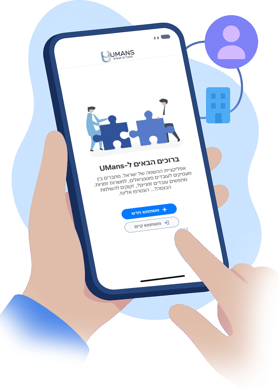 UMans היא אפליקציה שמחברת בין עסקים וחברות לבין עובדים זמניים— בקלות, במהירות ובשקיפות מלאה. בין אם אתה בעל עסק שמחפש תגבור מיידי, או עובד שמחפש השלמת הכנסה — UMans כאן בשבילך.